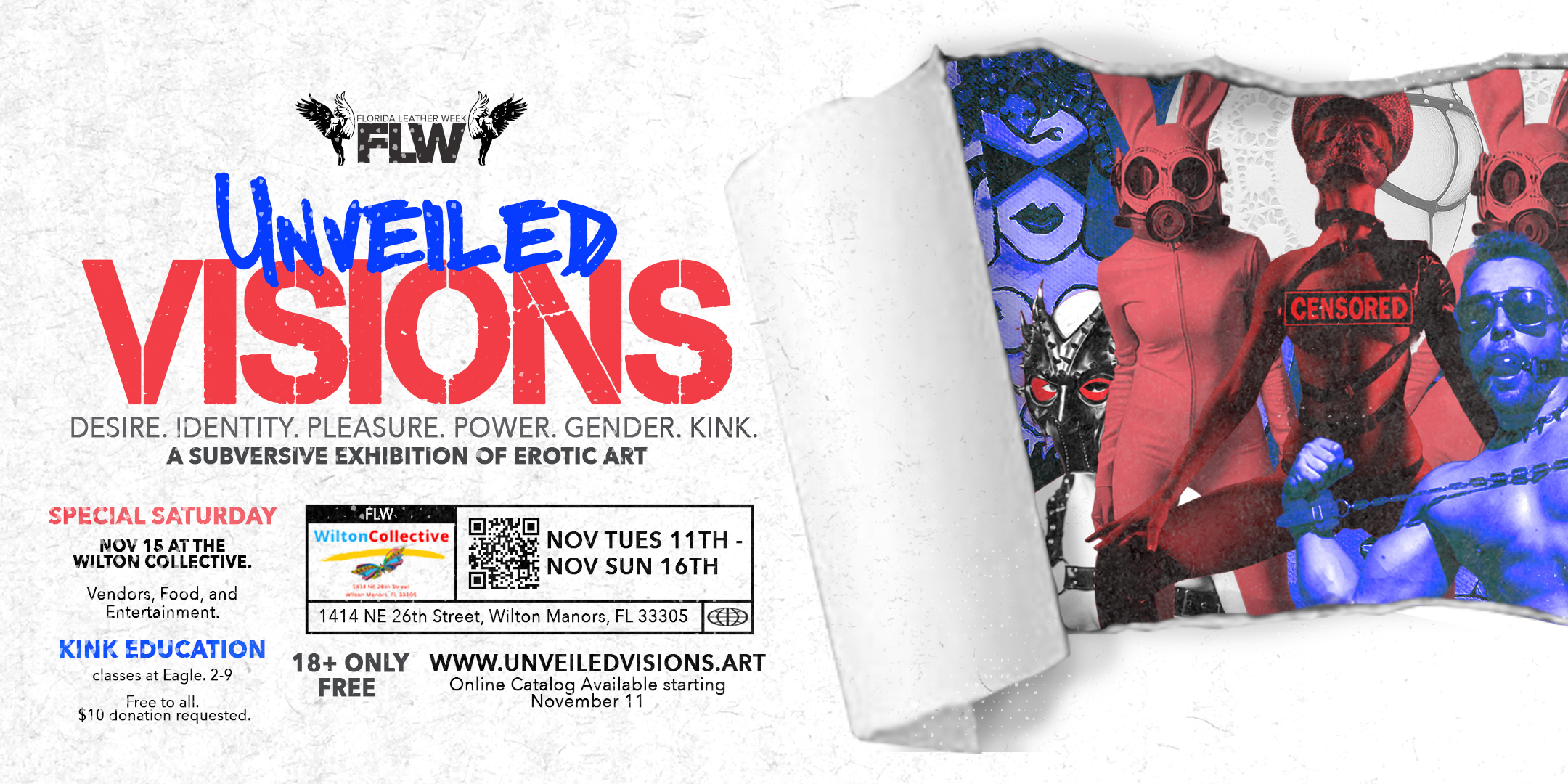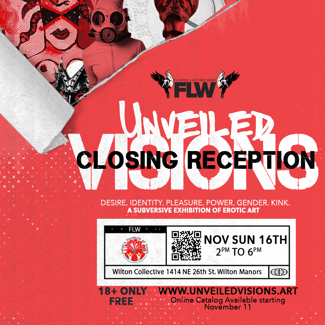 Unveiled Visions – Desire. Identity. Pleasure, Power. Gender. Kink – A subversive exhibition of erotic art. A bold, inclusive exhibition celebrating the richness and creative power of artists from across the spectrum of identity and desire. Exploring the erotic in all its forms — from classical nudes to kink, fetish, power dynamics, leather, rubber, and alternative relationships — Unveiled Visions delves into eroticism, identity, and expression without limits.